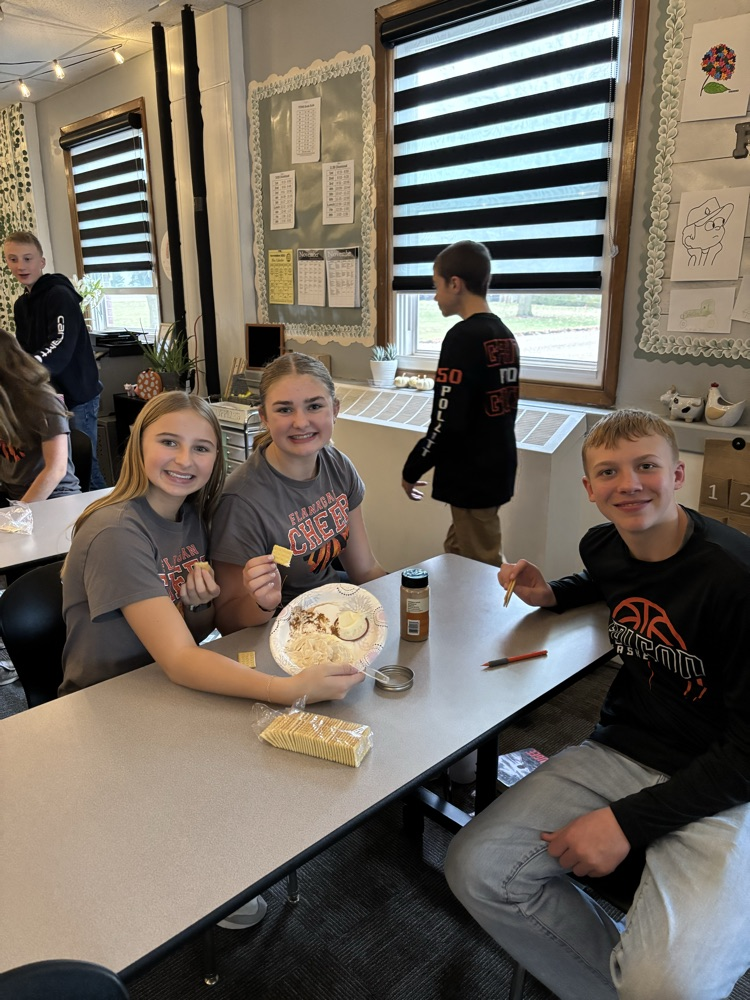 Mrs. Kaeb's 8th grade Ag class has been learning where their food comes from and how it's made. This week they made butter in a jar. They had different varieties that included honey, garlic, and cinnamon sugar that they enjoyed with crackers. Today they made homemade ice cream in a bag. They enjoyed this with a variety of toppings!