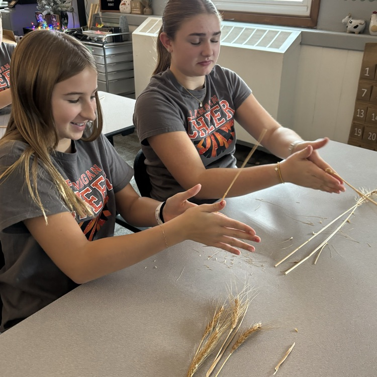 Last week, our 8th grade Agriculture students got hands-on with the full process of turning wheat into a food product. They started by learning how wheat is harvested and practiced threshing—removing the kernels from the wheat stalk by hand. After collecting their kernels, students ground the wheat into flour and compared it to store-bought white flour.