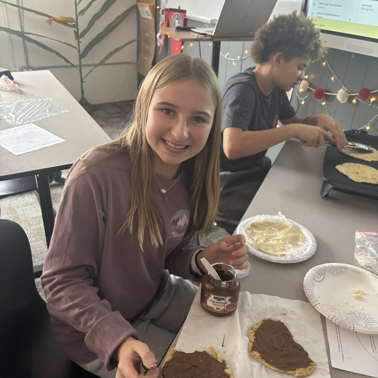 Using both their homemade whole-wheat flour and regular white flour they used the “tortilla-in-a-bag” method. To finish, students turned their tortillas into tasty creations—choosing between Nutella wraps or cheesy quesadillas.